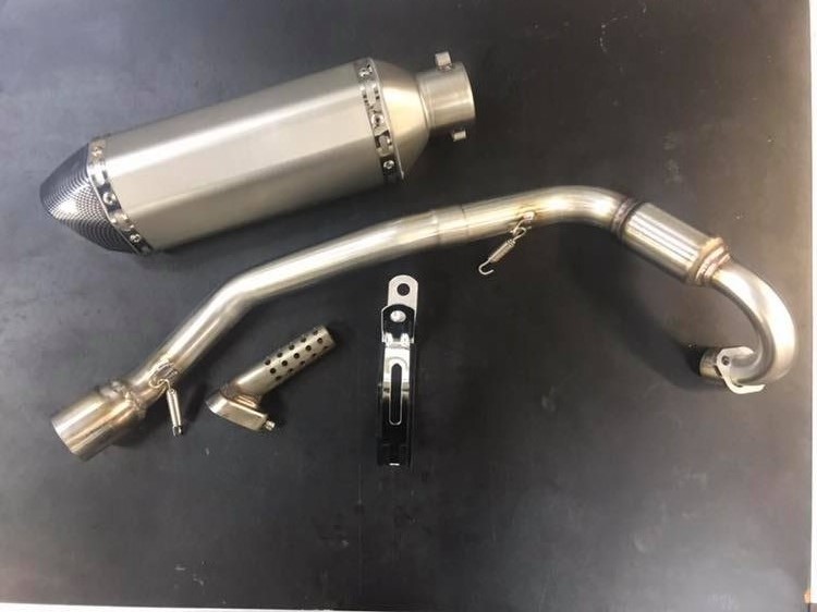 Racing Auspuffanlage mit mehr Volumen und herausnehmbaren, 2- fach verstellbaren dB- Eater.